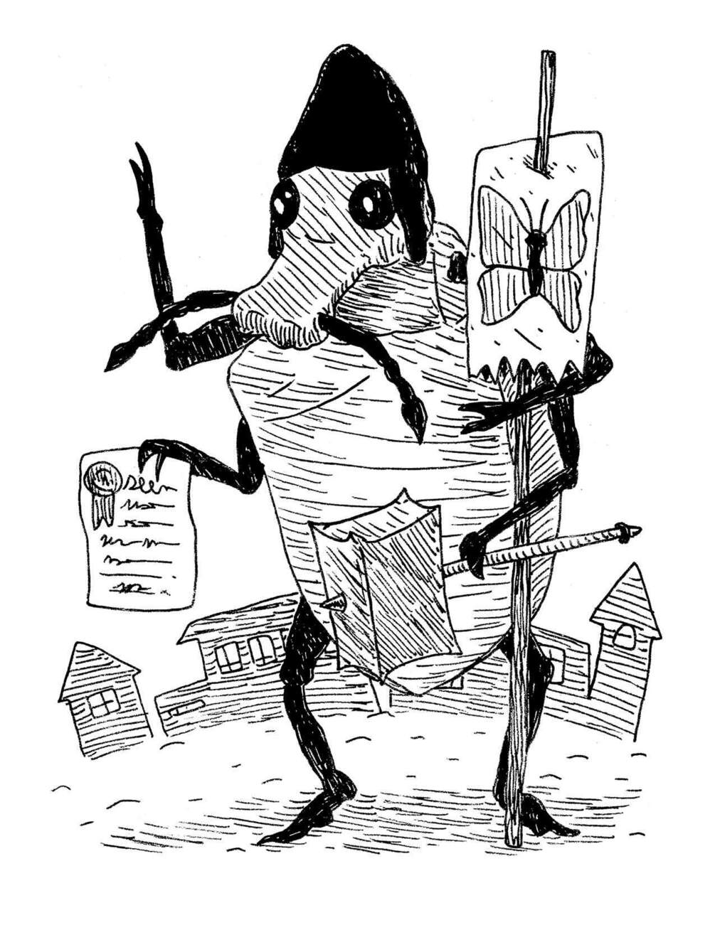 A 16-page zine of bug adventurers: thieves, warriors, wizards, rangers, warlocks; cicadas, grasshoppers, dragonflies, weevils, scorpions. And more. 16 bugs in all!